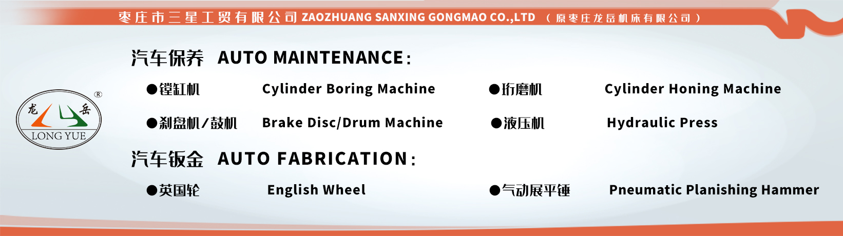 公司专业从事汽保设备的生产已有20余年。销售网络覆盖全国,售后服务体系完善,产品出口东南亚、中东、非洲、德国、南美等国家和地区。现主要产品有:1、T83系列立式制动鼓镗床。2、C93系列卧式制动盘(鼓)车床。3、T80系列完美(中国)官方、珩磨机,4、LTC系列中、大型轮胎拆装机,系列单边举升机,叉式便捷式举升机,侧滑测试仪等汽车保修、检测产品。